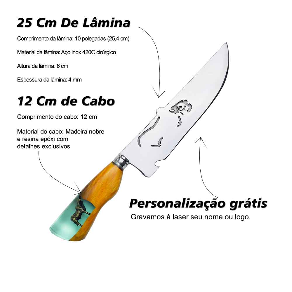 Com a Faca de Churrasco Artesanal 10", você não estará apenas investindo em um utensílio, mas em uma experiência completa que valoriza a tradição e transforma o churrasco em um ritual único. Adquira agora a sua faca e personalize com seu nome!